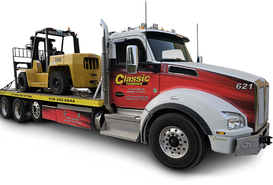 Urgently need a load shift in Joliet or Elwood? Overweight at the scales on I-55 or I-80? Naperville Classic Towing has fork lifts, skid steers, and pallet jacks to shift your load and correctly distribute your weight to meet the legal requirements over your axles. We can even re-wrap your pallets if necessary. Along with heavy duty towing and load shifts Naperville Classic Towing provides load-transfers, semi-truck jump starts, pull-starts, decking, diesel delivery, lock-outs, basic mobile repairs, and Landoll flatbed trailer service. Our Landoll flatbed trailers are ideal for transporting construction and other heavy equipment, shipping containers, and damaged or disabled trucks with non-rolling wheels. Naperville Classic Towing even maintains a certified, in-house dive team and owns state-of-the-art SCUBA equipment. We are one of the few heavy duty towing companies in Illinois that has the capability to recover vehicles that are fully submerged underwater without the help of municipal dive teams. Call 24 hours-a-day for fast, professional, and cost effective heavy duty towing service in Joliet or Elwood.